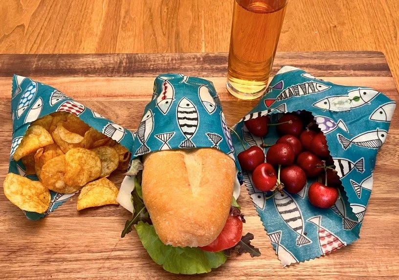 These unique beeswax wraps are handy for food storage and for covering dishes, eliminating the need for plastic wrap or aluminum foil.